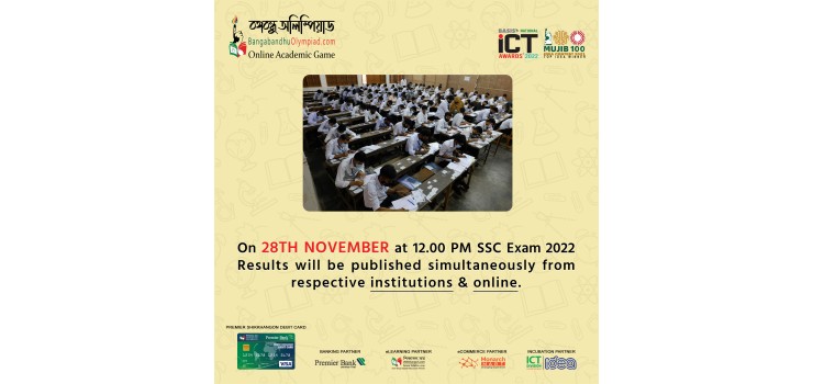 ২৮ নভেম্বর ২০২২ তারিখ বেলা ১২.০০ টায় এসএসসি পরীক্ষা ২০২২ এর ফল স্ব স্ব প্রতিষ্ঠান থেকে এবং অনলাইনে একযোগে প্রকাশ হবে। নিম্নে উল্লেখিত যে কোন পদ্ধতিতে স্ব স্ব প্রতিষ্ঠানের রেজাল্ট শিট ডাউনলোড করা যাবে ।